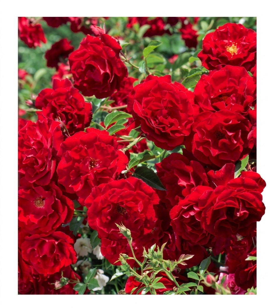 Hello® przyciąga spojrzenie swoim intensywnym, wiśniowo czerwonym kolorem, który w świetle przybiera głęboki, niemal purpurowy ton. Kwiaty są bogato wypełnione płatkami, co nadaje im efekt miękkiej kuli oraz dekoracyjnej struktury – pojawiają się w gronach, dzięki czemu krzew wygląda bardzo pełnie i elegancko przez cały sezon. Liście błyszczące i zielone stanowią kontrast dla czerwieni kwiatów, podkreślając ich głębię barwy. Dzięki kompaktowemu wzrostowi Hello® doskonale sprawdza się w mniejszych ogrodach oraz w pojemnikach, gdzie jego intensywna barwa może być akcentem. Choć zapach nie jest jego silną stroną, to właśnie kolor i forma czynią go niezwykle dekoracyjnym wyborem.