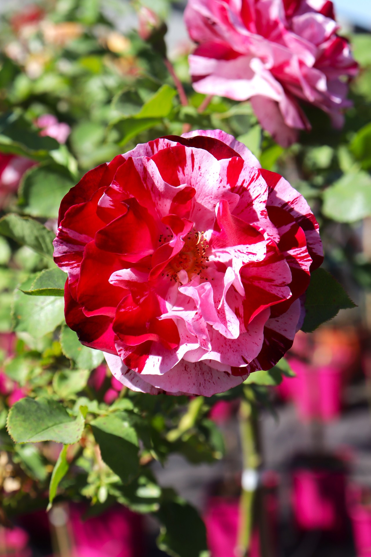 New Imagine® to róża pełna kontrastów. Delikatna baza w odcieniach kremu, ozdobiona intensywnymi, losowymi prążkami i plamkami w tonach fioletu i czerwieni porzeczkowej. Każdy kwiat wydaje się być ręcznie malowany, co sprawia, że na krzewie nigdy nie ma dwóch identycznych kwiatów. Kwiaty układają się w gęste bukiety na tle błyszczących, ciemnozielonych liści. Choć zapach nie jest dominujący, dodaje subtelności wizualnej kompozycji.